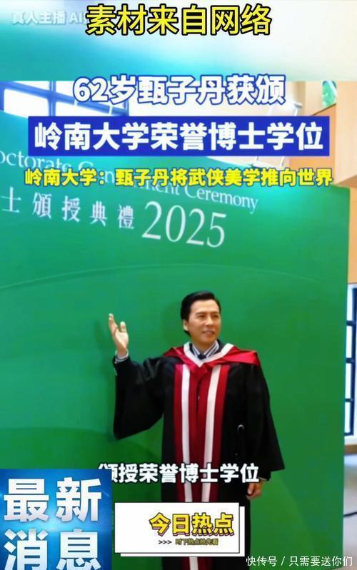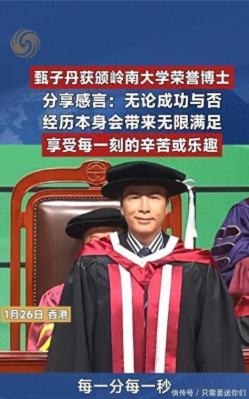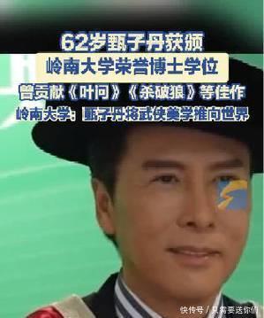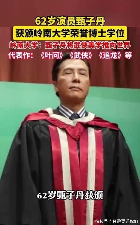功夫巨星变身大学博士,颁奖词道出真相1月26日,岭南大学的荣誉博士颁授典礼上,功夫巨星甄子丹站在了领奖台,接过了荣誉人文学博士学位证书[1]。这个消息瞬间引发热议——在大家印象里,甄子丹是荧幕上以一当十的叶问,是踢馆复仇的李小龙,很多人以为他和“博士”二字搭不上边。但27日甄子丹发文回应,“叙事本身,便是最纯粹的艺术性学术”,让不少人恍然大悟:他用功夫讲了几十年中国故事,这个博士学位实至名归。